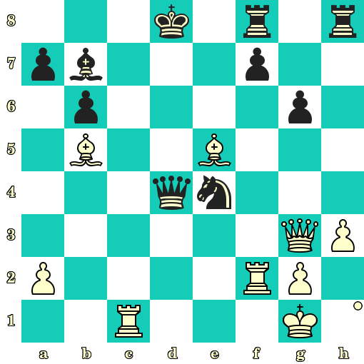 Échec et mat en 4 coups : 1. Dd4+ Rg8 2. Dd8+ Rg7 3. Df6+ Rg8 4. Td8#